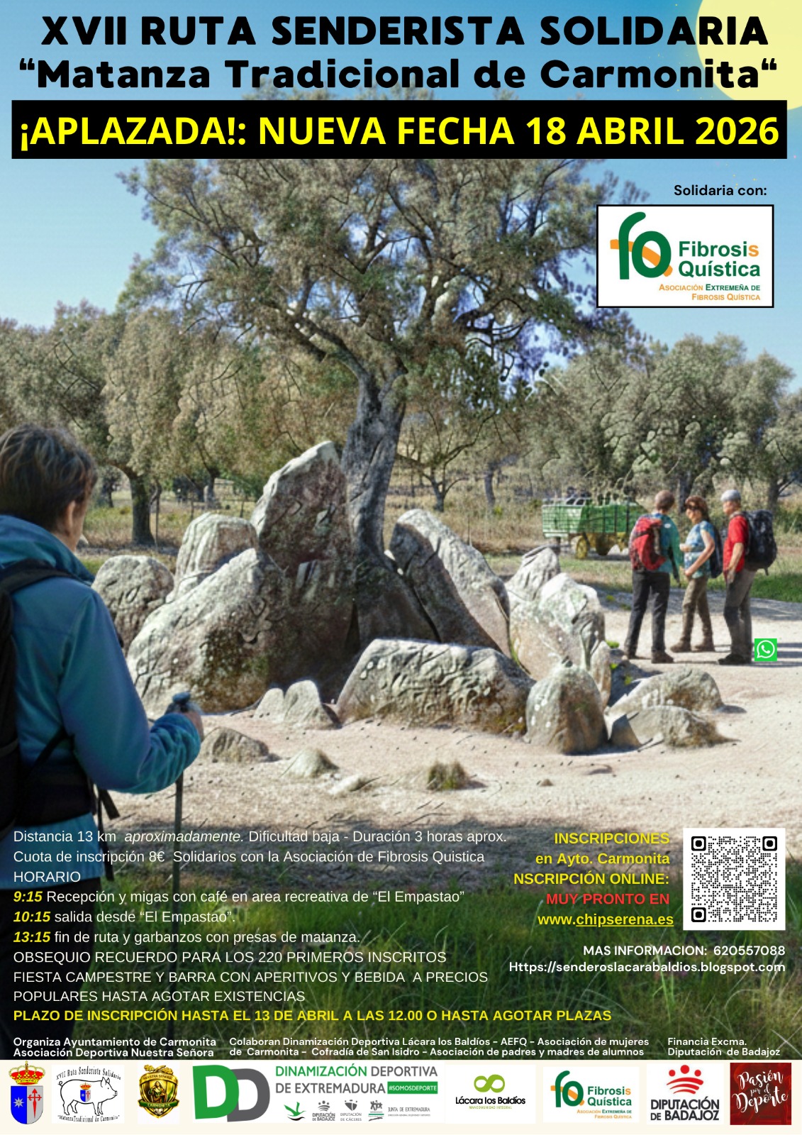 🐖🔥 XVII Matanza Popular Carmonita📅 18 de abril📍 Finca El Empastao Tradición, gastronomía y solidaridad en un día único con migas, asado, caldereta, garbanzos, ruta solidaria y música. Evento solidario…